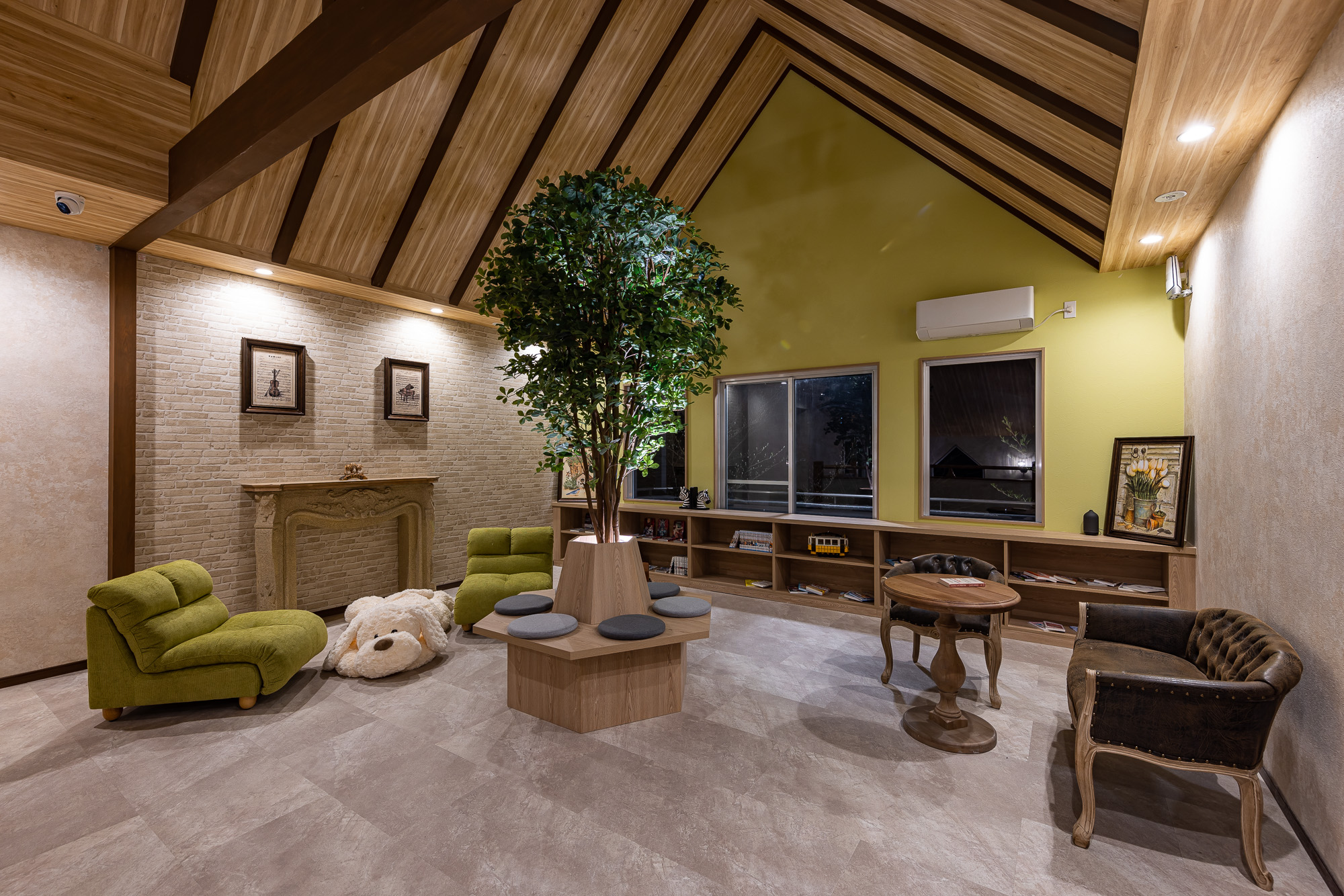 At the top of the central staircase facing the entrance, you’ll find an open, greenery-themed space welcoming you. We’ve stocked a variety of books, including manga and travel magazines, for children and adults alike to enjoy.